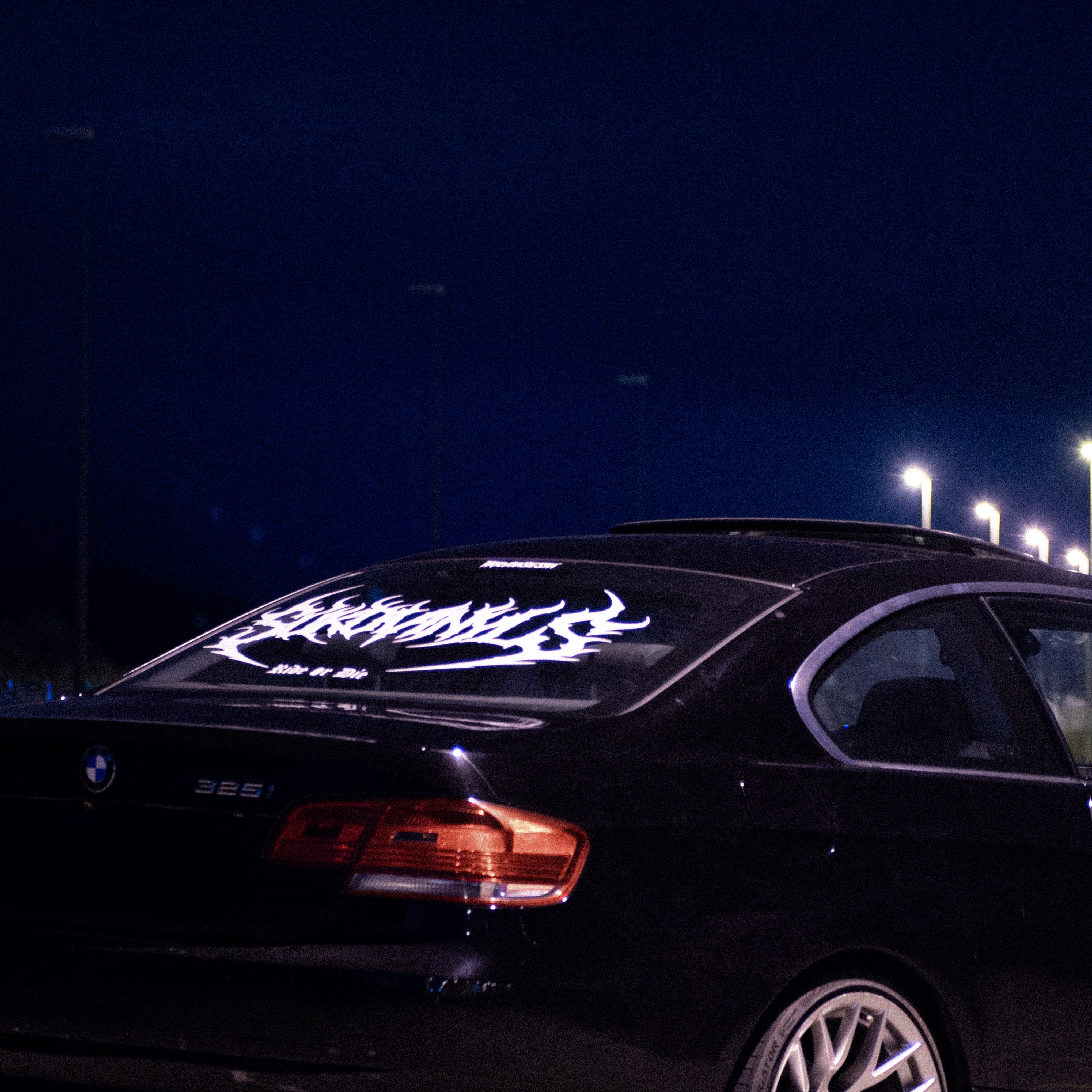 Diseño agresivo y extremo con formas punzantes y caóticas pero perfectamente simétrico, en formato banner.